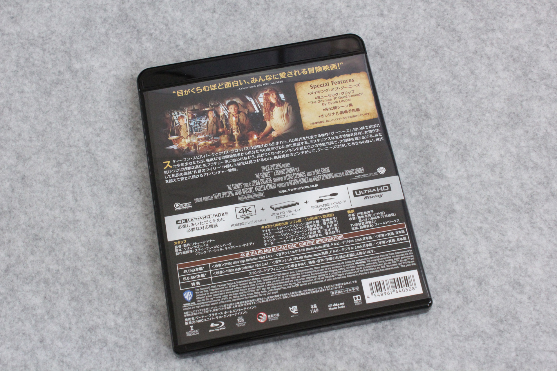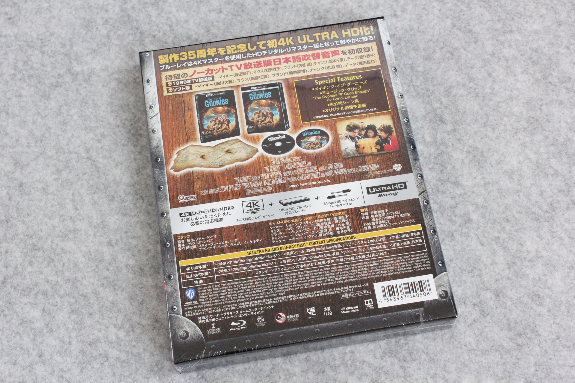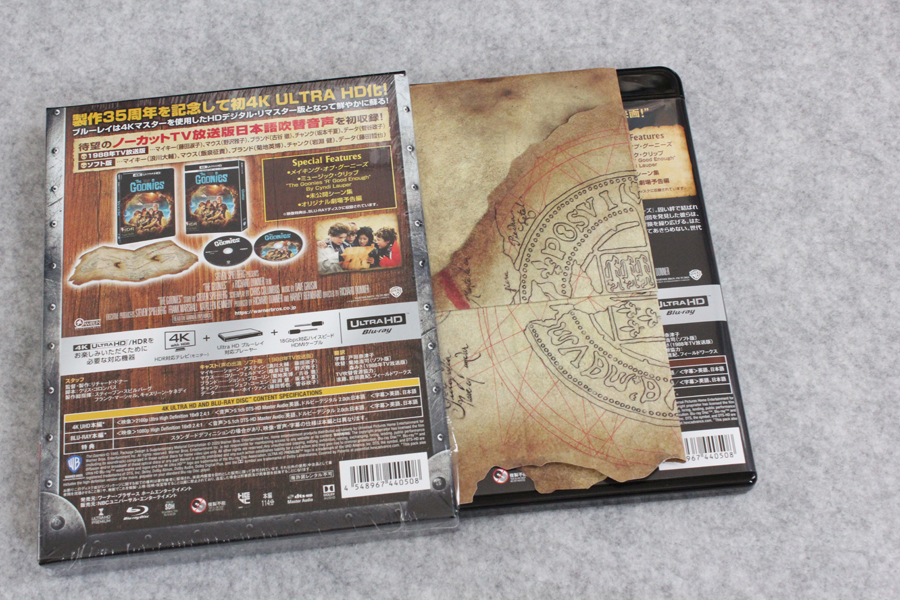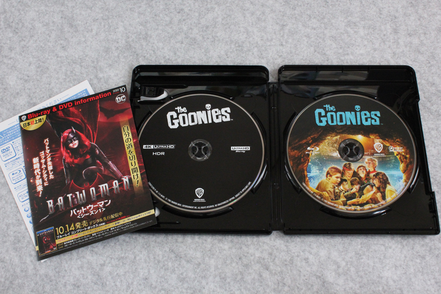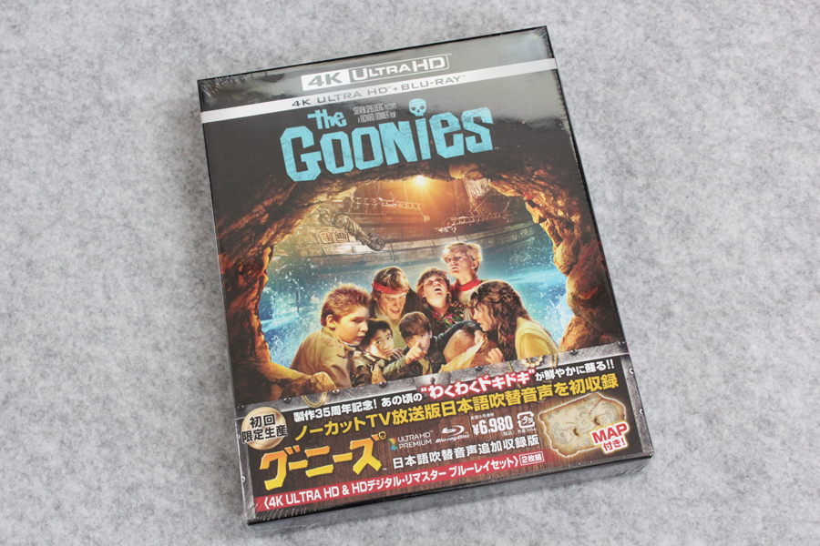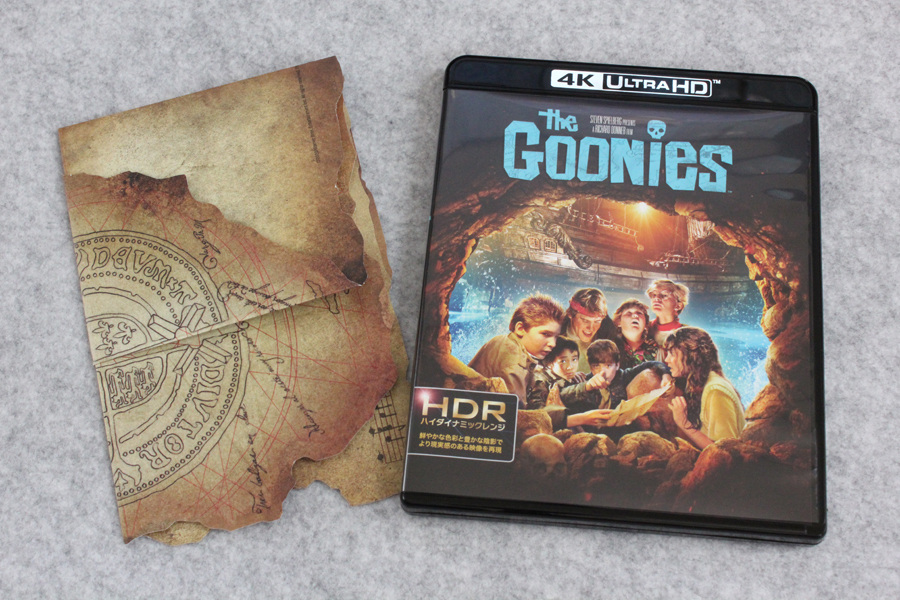 1988年地上波放送版吹替をノーカット収録した「(初回限定生産)グーニーズ 日本語吹替音声追加収録版 (4K ULTRA HD & HDデジタル・リマスター ブルーレイセット)(2枚組)[4K ULTRA HD + Blu-ray]」が届いたので記念写真。※リンクはAmazon