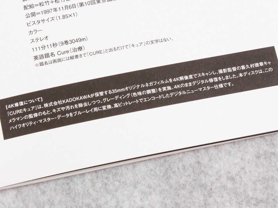 「CURE 4Kデジタル修復版 Blu-ray」が届いたので記念写真。※リンクはAmazon
