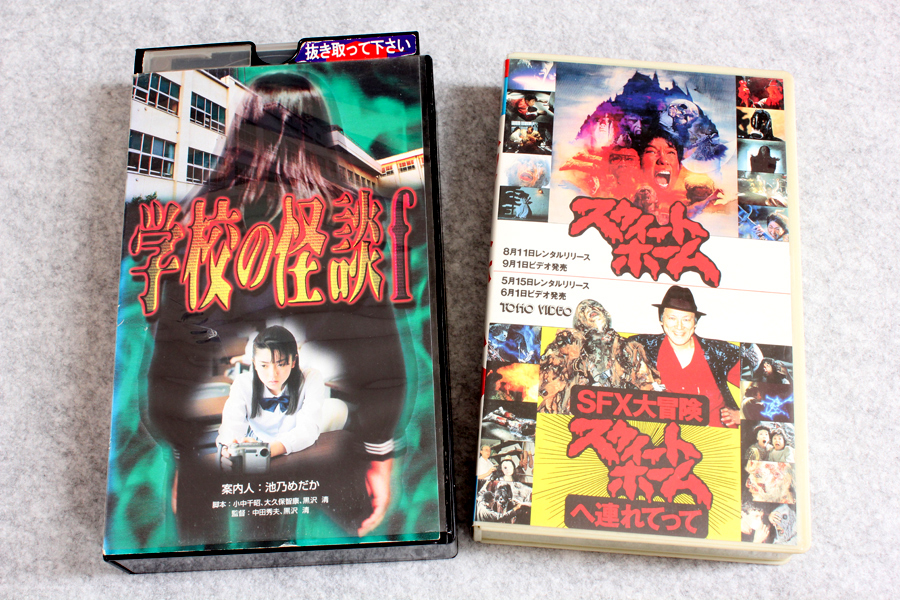 ↓VHSソフト。左は「学校の怪談f」のレンタル落ち、右のは「スウィートホーム」と、メイキングビデオ「スウィートホームへ連れてって!」を紹介する無料貸出ビデオ。レンタル屋のおにいちゃんと仲良しだったので貰った♪