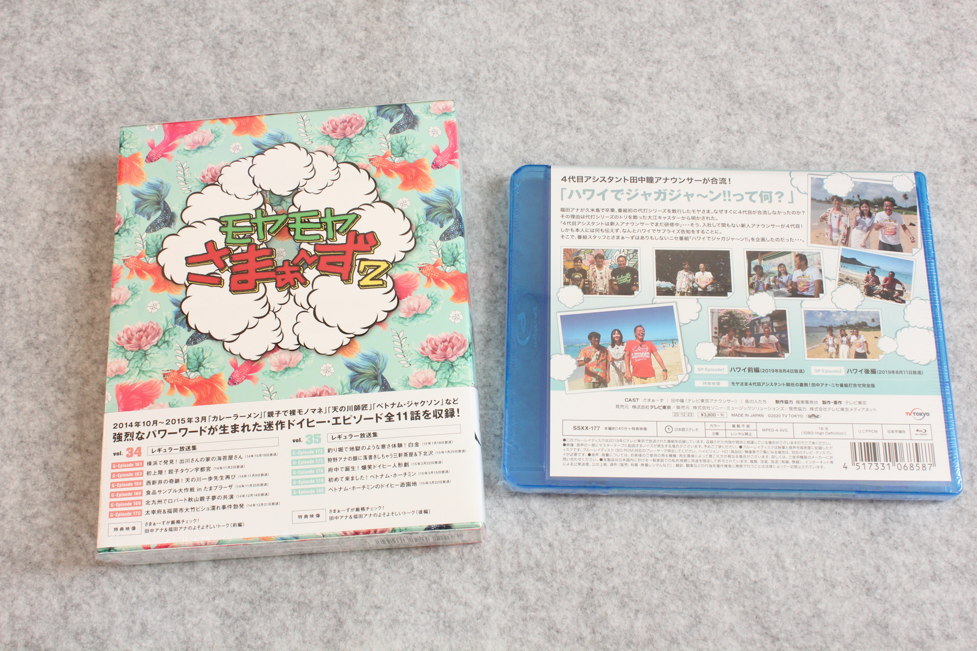 ブルーレイ「モヤモヤさまぁ~ず2 Blu-ray BOX (vol.34 & vol.35) (特典なし)」と、「モヤモヤさまぁ~ず2 田中瞳アナ 4代目ドッキリ就任SP In Hawaii ディレクターズカット版 (Blu-ray) (特典なし)」が届いたので記念写真。※リンクはAmazon