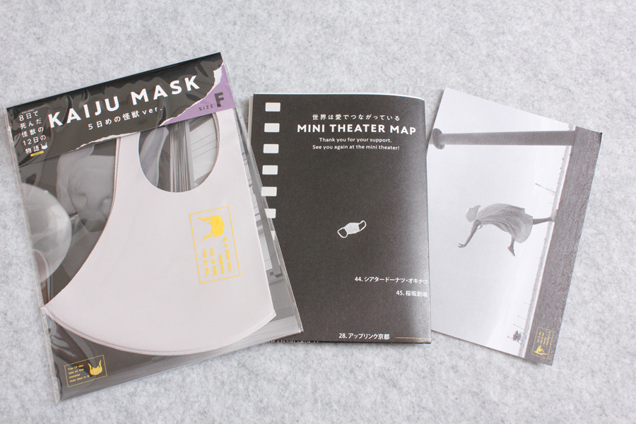 ↓封入特典。左から、「KAIJU オリジナルマスク」、「ミニシアターMAP」、「オリジナルポストカード」。