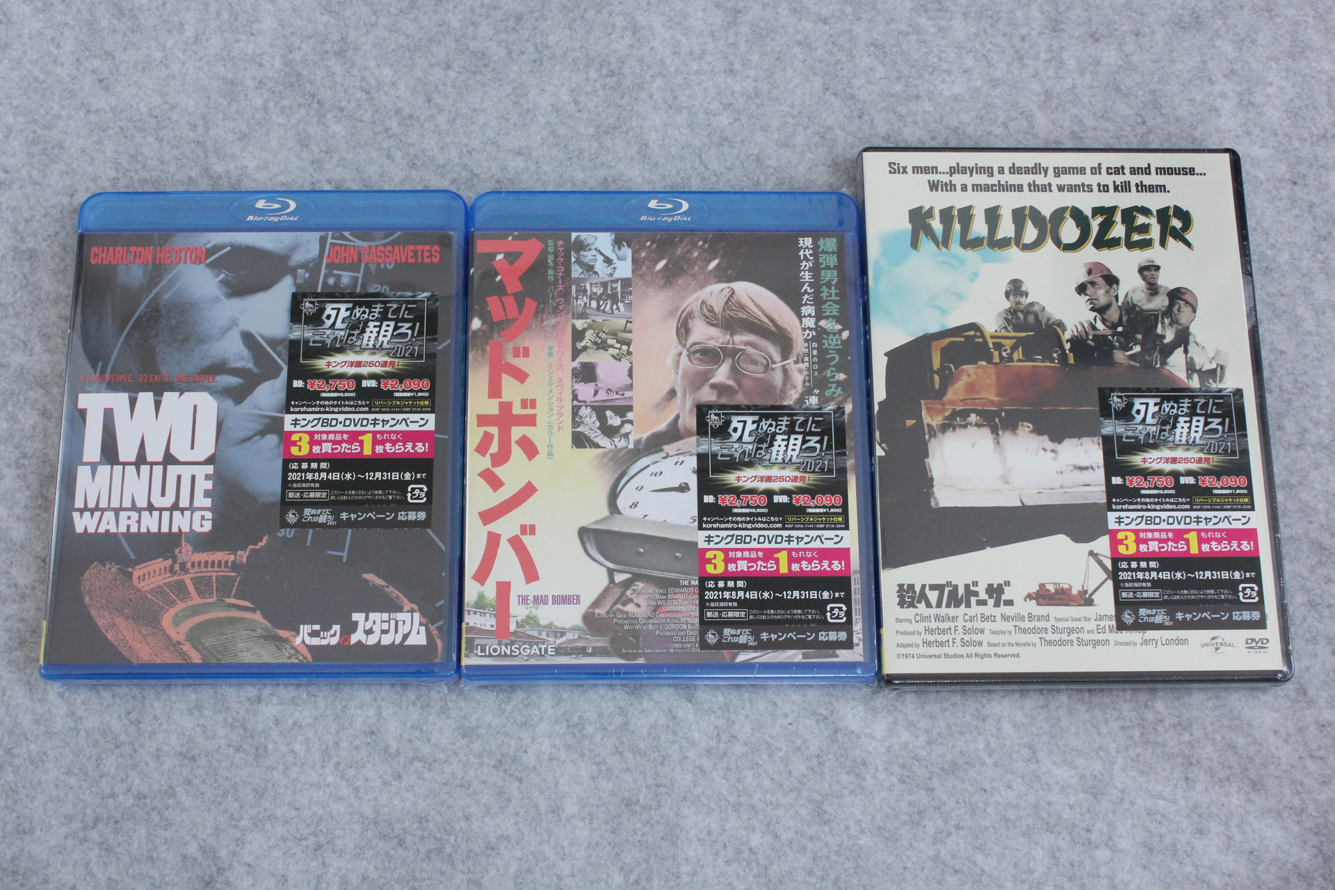 ↓それからこちら。「パニック・イン・スタジアム」「マッドボンバー」、DVDの「殺人ブルドーザー」。