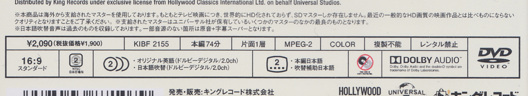“※本商品は海外から支給されたマスターを使用しております。もともとテレビ映画につき、世界的にHD化されておらず、SDマスターしか存在しません。最近の一般的なHD画質の映画作品とは比べものにならないクオリティとなりますことをご了承ください。”