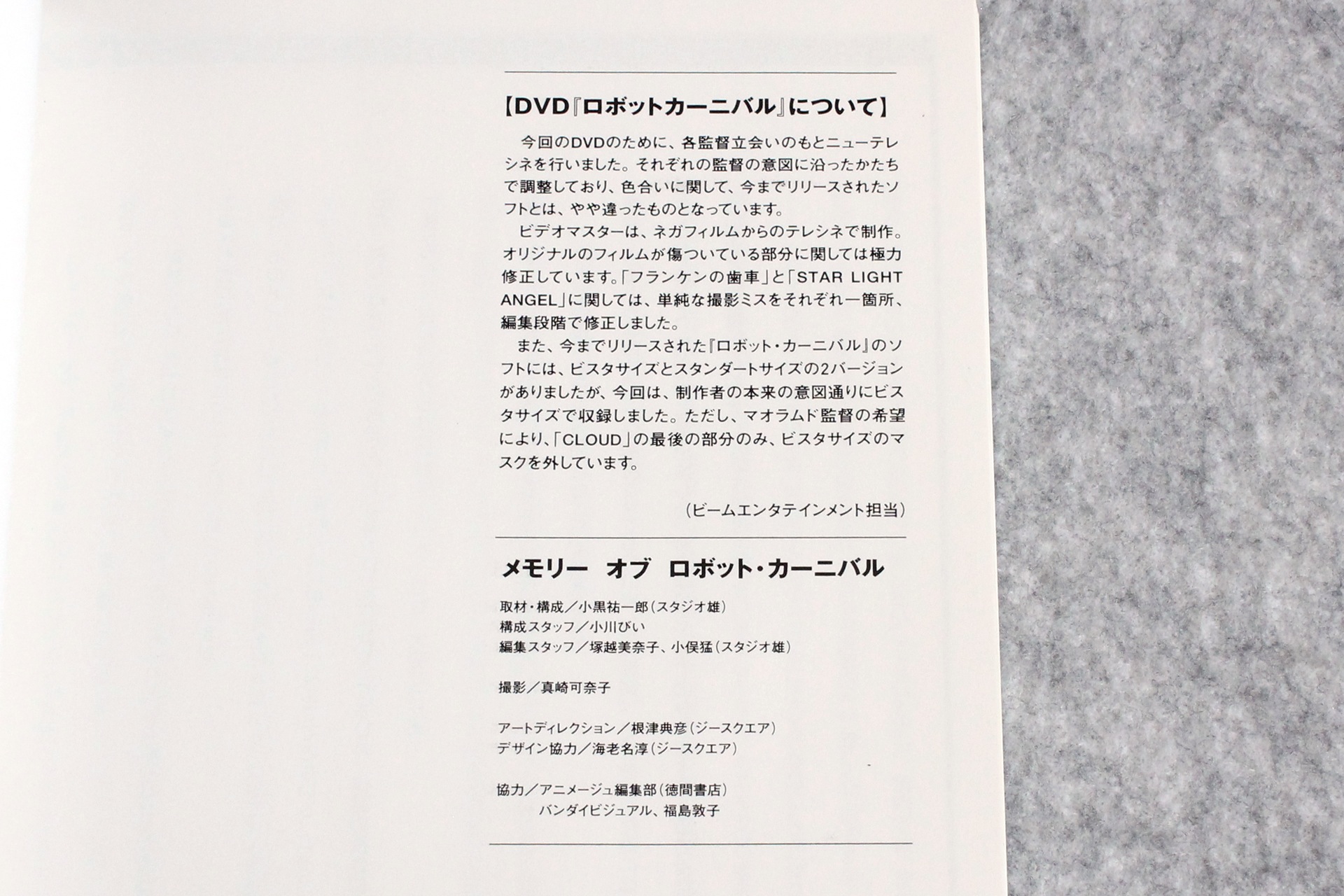 それから、2000年に発売された初回限定版DVD(レターボックス収録)も引っ張り出して来たので、こちらもついでに撮影。