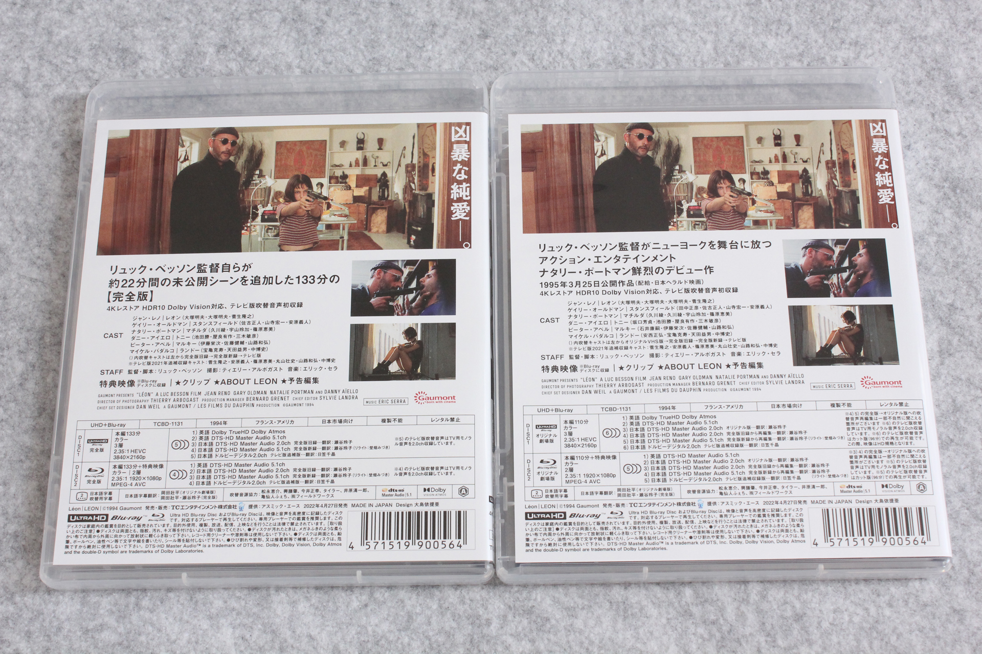 「レオン 完全版/オリジナル版 4K UHD+Blu-ray(4枚組)」が届いたので記念写真。※リンクはAmazon