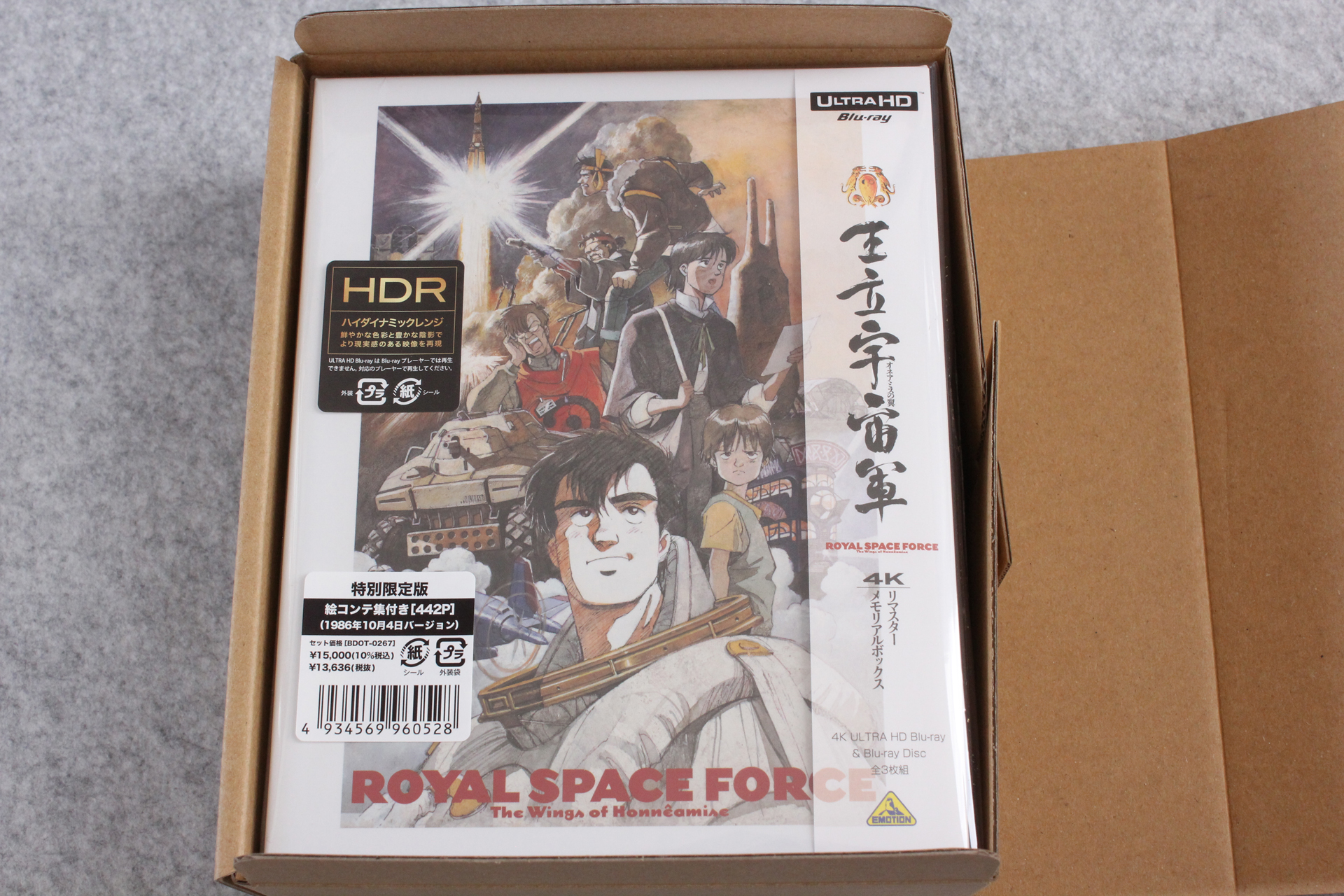 バンダイナムコフィルムワークス公式ショップA-on STOREから、「王立宇宙軍 オネアミスの翼 4Kリマスターメモリアルボックス (4K ULTRA HD Blu-ray & Blu-ray Disc) 【特別限定版】」が届いたので記念写真。
