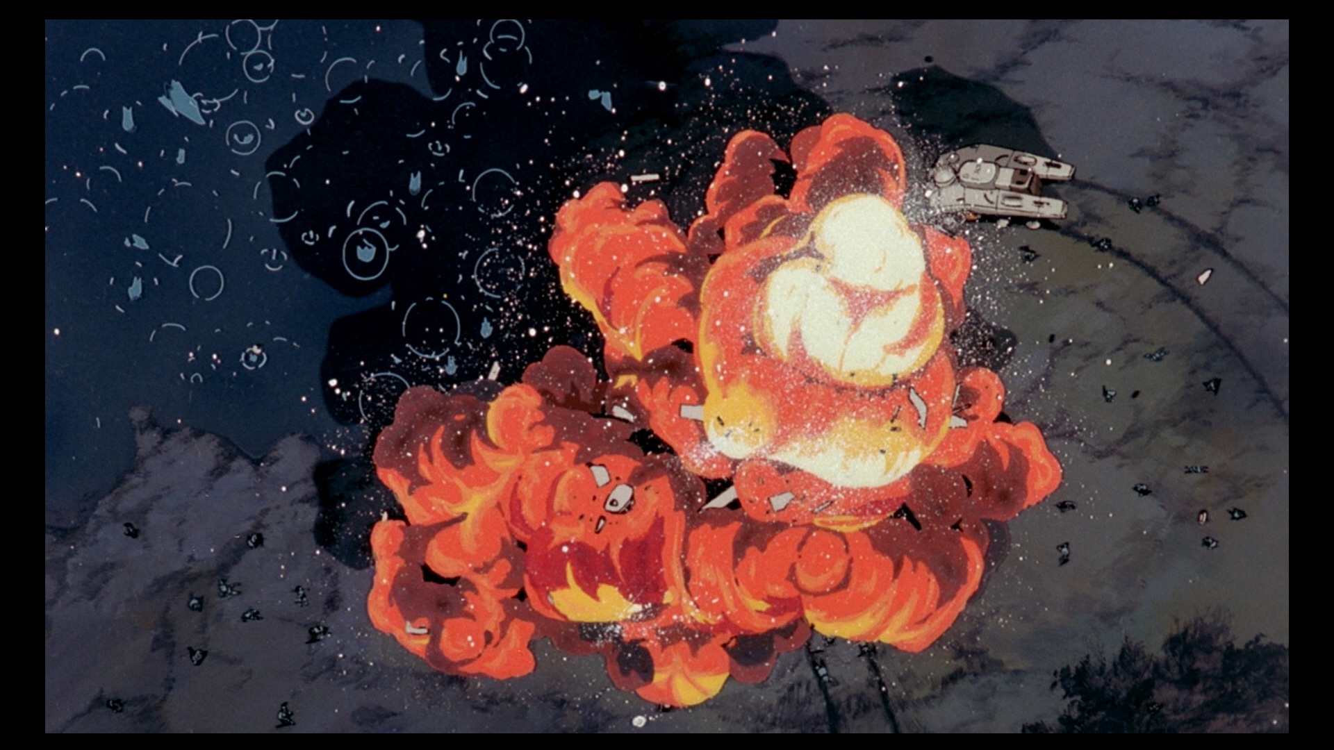 ただ、飛び散る細かな破片に注目して両者を比較すると、4Kリマスター版ではグレインと一緒に消えてしまったのか、破片の数が減っちゃってますな(笑)