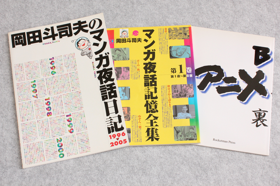 ↓こちらは岡田斗司夫の同人誌あれこれ。左から「岡田斗司夫のマンガ夜話日記」「マンガ夜話記憶全集」「BSアニメ夜話裏話」。