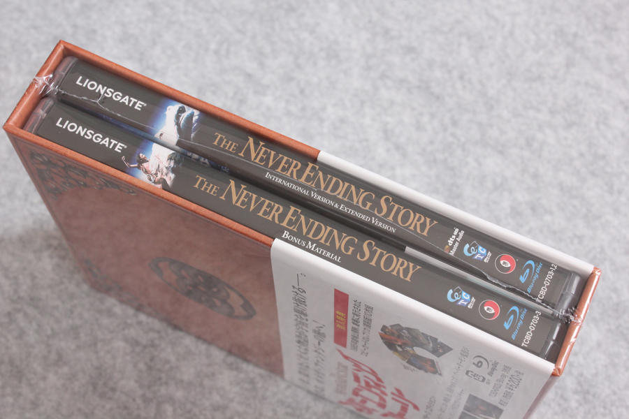 ↓BOXオモテ。バスチアンが読む「はてしない物語」の本を模したデザイン。オビの下のタイトルロゴが金の箔押しだったり、ちょっとコストかかってそうな作り。