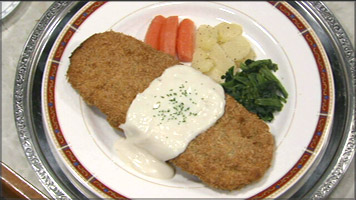 本日の「偽りの花園」に登場した、昼ドラ伝統の衝撃メニュー”ミラノ風カツレツ”。