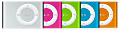 いままでシルバーモデルのみだったiPod shuffleに、ピンク/グリーン/ブルー/オレンジの4色が加わり5色になったようだ。