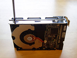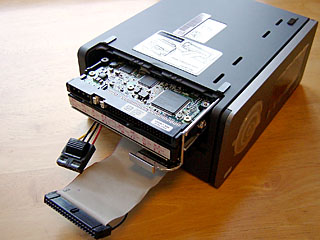 HDDを本体に滑り込ませて、電源とATAケーブルを接続。