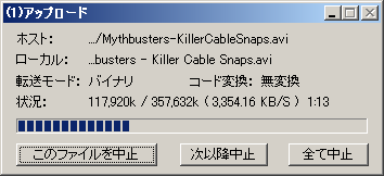 「FFFTP」使用時で、大体3〜3.5MB/s位のスピードがでている模様。