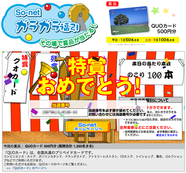 気が向いた時に回してみる「So-netガラガラ福引」。