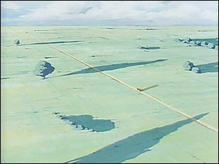 このカットは、朝日が昇り切る直前の画と、朝日が昇り切って長い影がのびた画↑をOLしていて、そこらへんの描写もまた素晴しい。