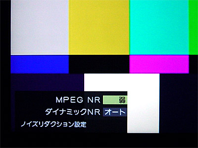 自分は状態の悪いフィルムの映画を観る事も多いし、時にはCSの映画も観るけども、ノイズ以上にNR感が好きではないので「MPEG NR」は弱、「ダイナミックNR」はオートを常用。↓