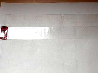 続いて、先ほどガイドをプリントしたラベル用紙のツルツル側に、「透明美色/24mm」を貼る。