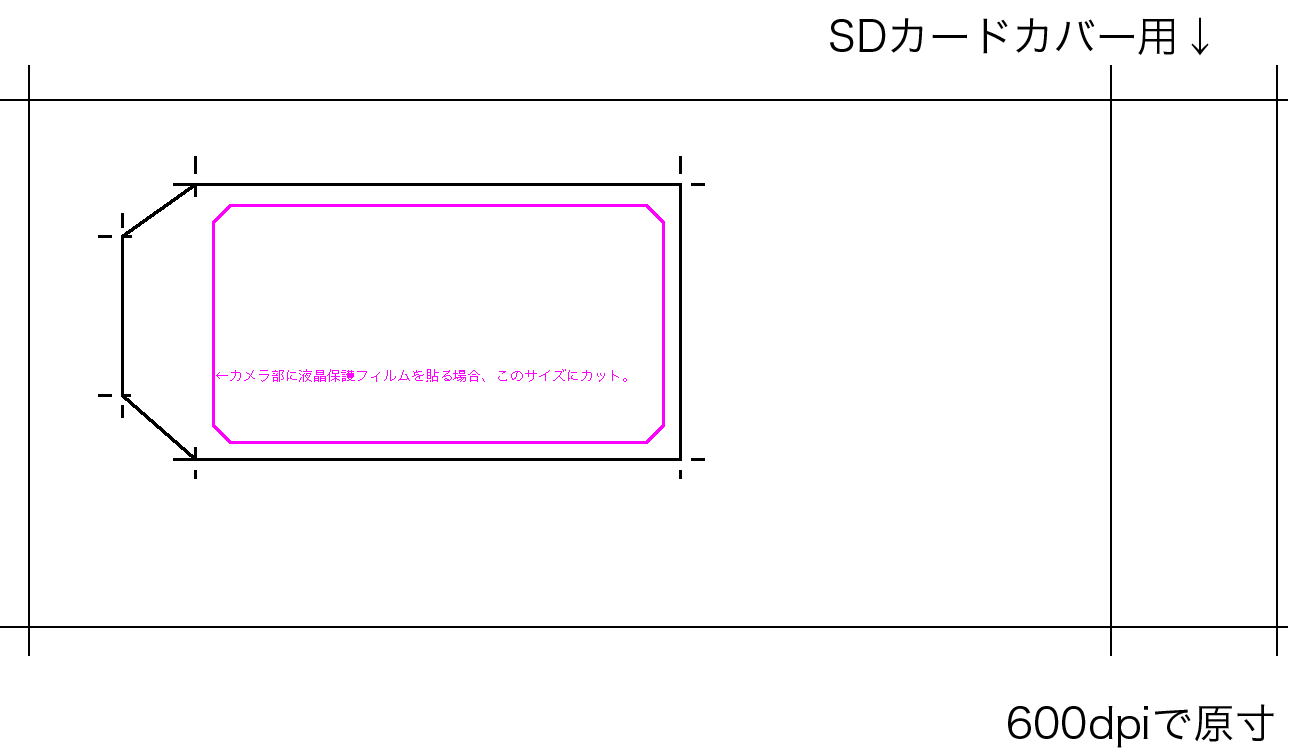 最後に、スキャンから大体の寸法を拾って書いた型紙用の図がこちら。