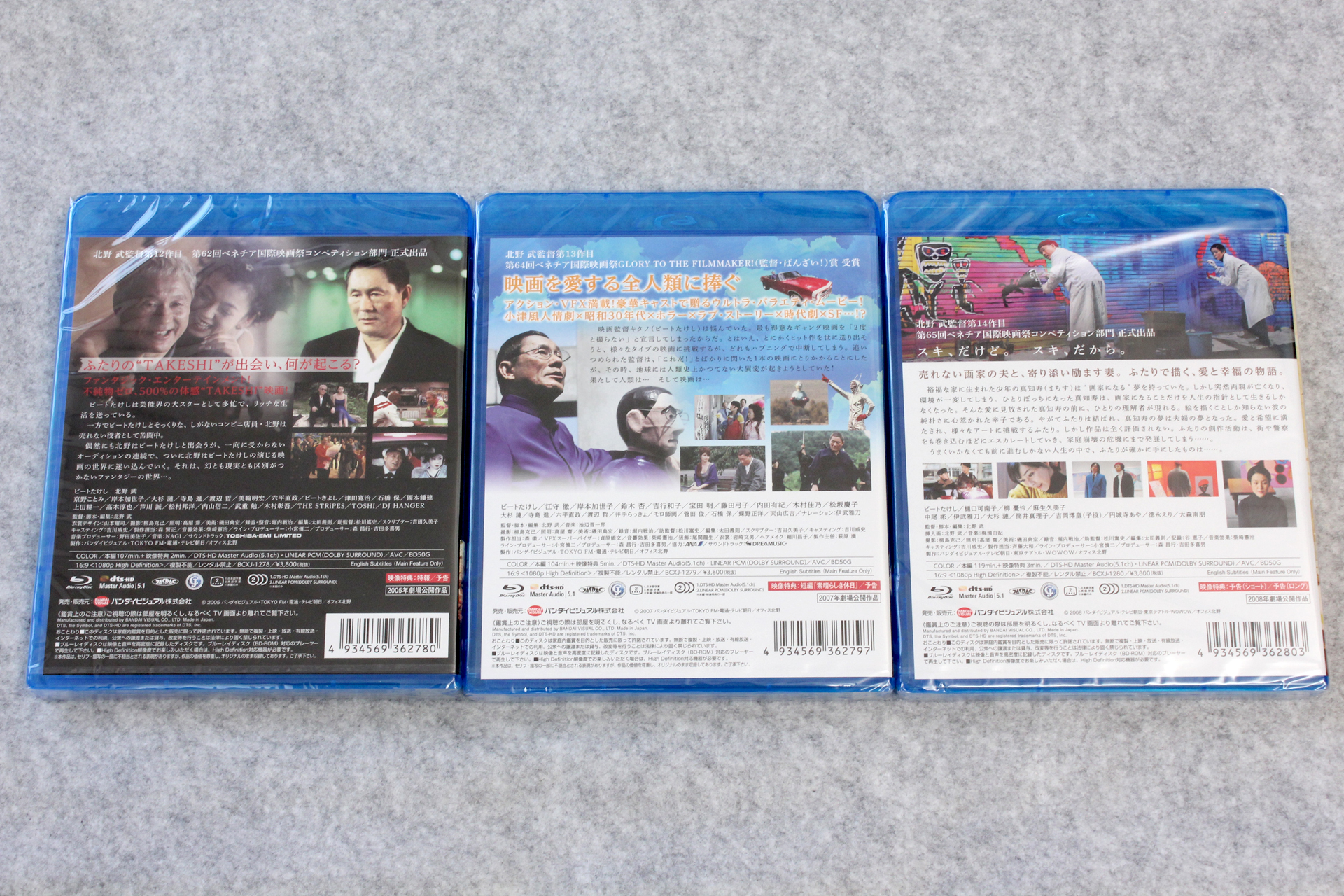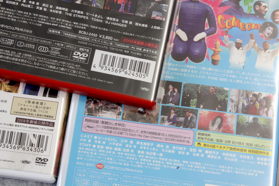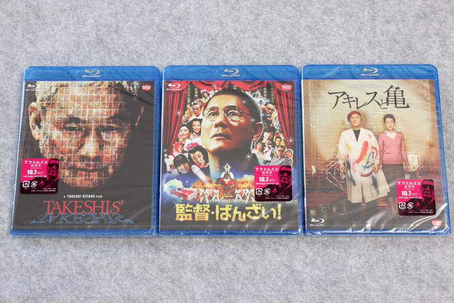 ブルーレイ「TAKESHIS’ [Blu-ray]」「監督・ばんざい! [Blu-ray]」「アキレスと亀 [Blu-ray]」が届いたので記念写真。※リンクはAmazon