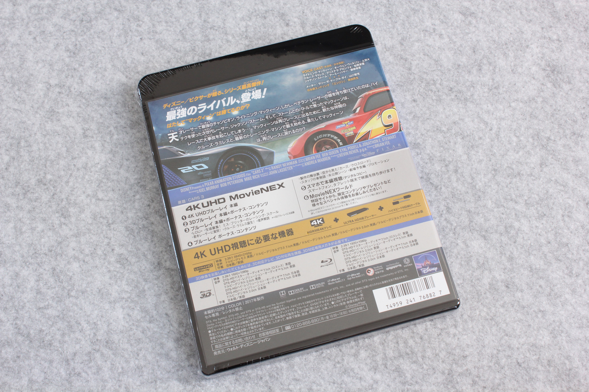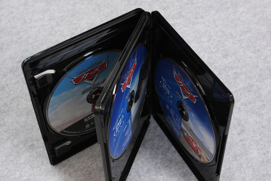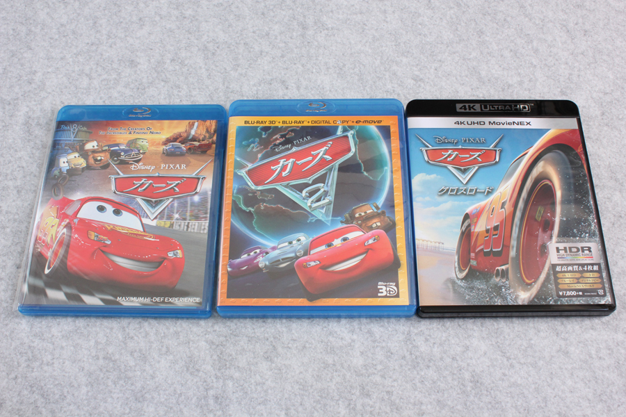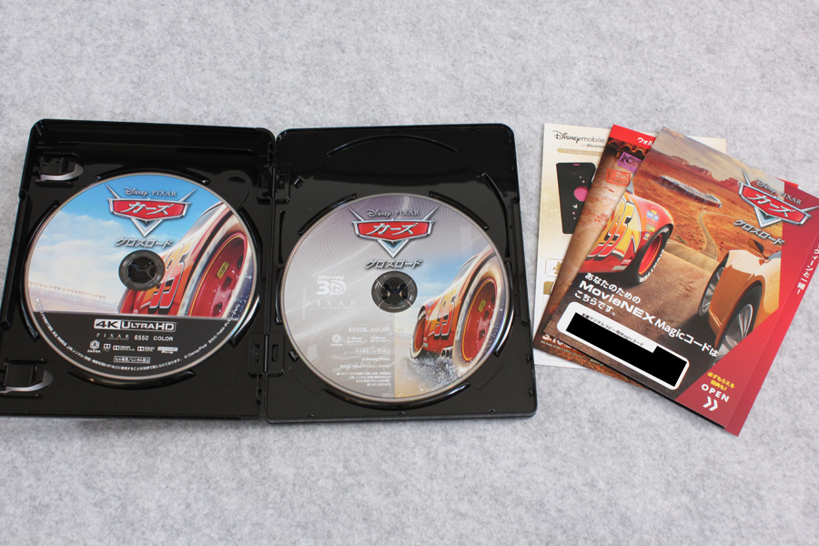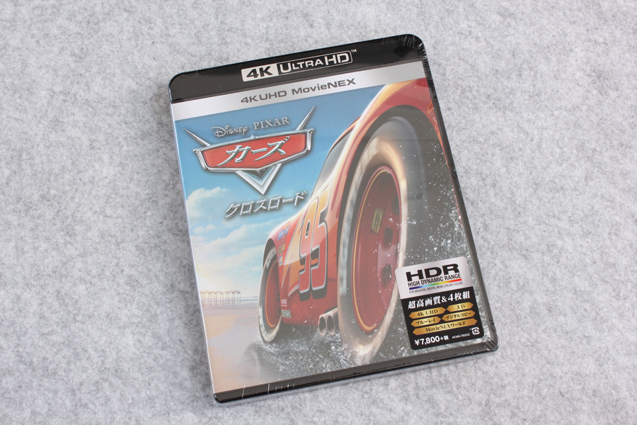 「カーズ/クロスロード 4K UHD MovieNEX(4枚組) [4K ULTRA HD + 3D + Blu-ray(本編ディスク、ボーナスディスク) + デジタルコピー + MovieNEXワールド]」が届いたので記念写真。※リンクはAmazon