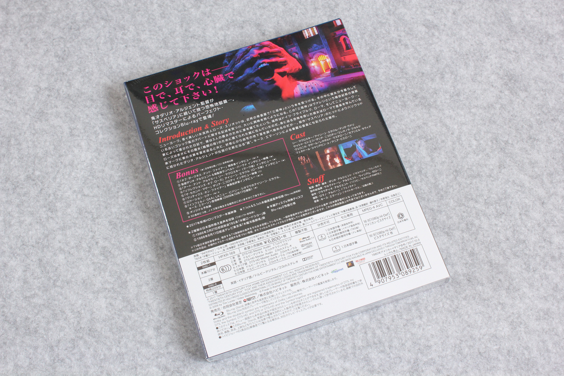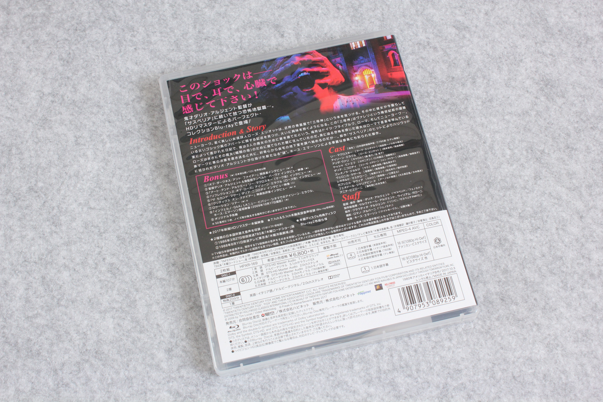 ・ブルーレイ「サスペリア <HDリマスター/パーフェクト・コレクション>」が届いたので記念写真–ダリオ・アルジェント/岡本茉利版吹替初収録