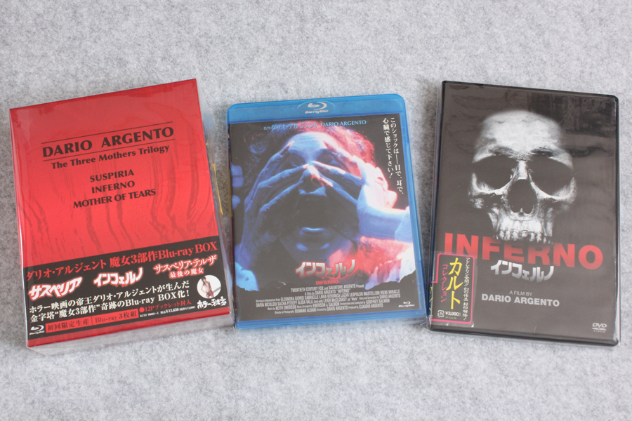 ↓こちらは左が魔女3部作BOXで、真ん中がその中身のキングレコード版BD。右のは当時「あの「インフェルノ」がついに!!」と驚喜した国内盤DVDソフト。