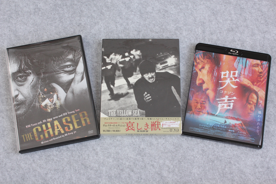 ↓ナ・ホンジンの過去作ソフトと。左の「チェイサー」BD化してくれないかなぁ、、、。真ん中の「哀しき獣」は、いつの間にか結構なプレミア価格になってた、、、。はやい。この2作、知らない人に見せるとハ・ジョンウが両方に出てるとは全然気付かない。