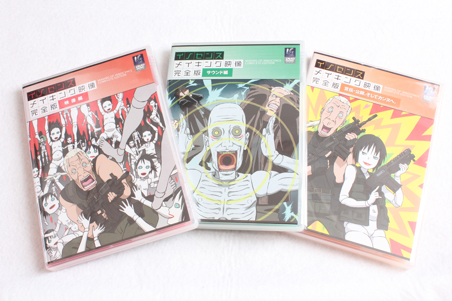 ↓あと、オマケでこちらは最近ブックオフから中古盤を購入した「イノセンス DVDコレクターズBOX」に付属していた「イノセンス メイキング映像 完全版」3枚組。これでなんと1000円以下。