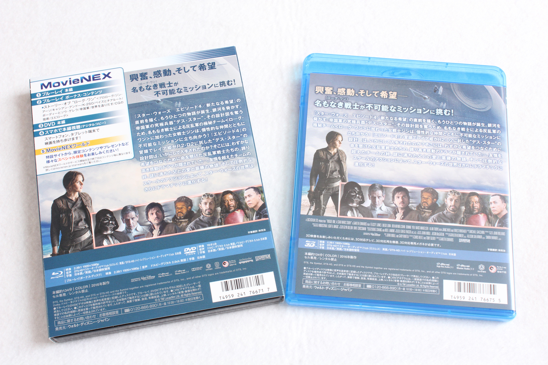 「ローグ・ワン/スター・ウォーズ・ストーリー MovieNEXプラス3D:オンライン初回限定商品 [ブルーレイ3D+ブルーレイ+DVD+デジタルコピー(クラウド対応)+MovieNEXワールド] [Blu-ray]」が届いたので記念写真。※リンクはAmazon