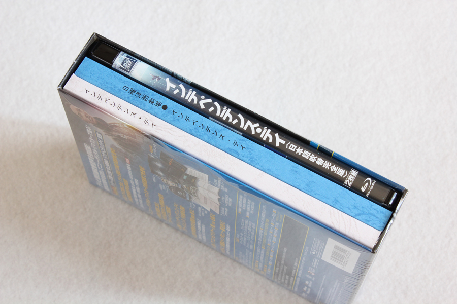 ↓中身。左の白い本がソフト版、真ん中の水色の本が日曜洋画劇場の吹替台本。右上がコンセプトアート集(オールカラー16p.)、右下がインナーケースオモテ。