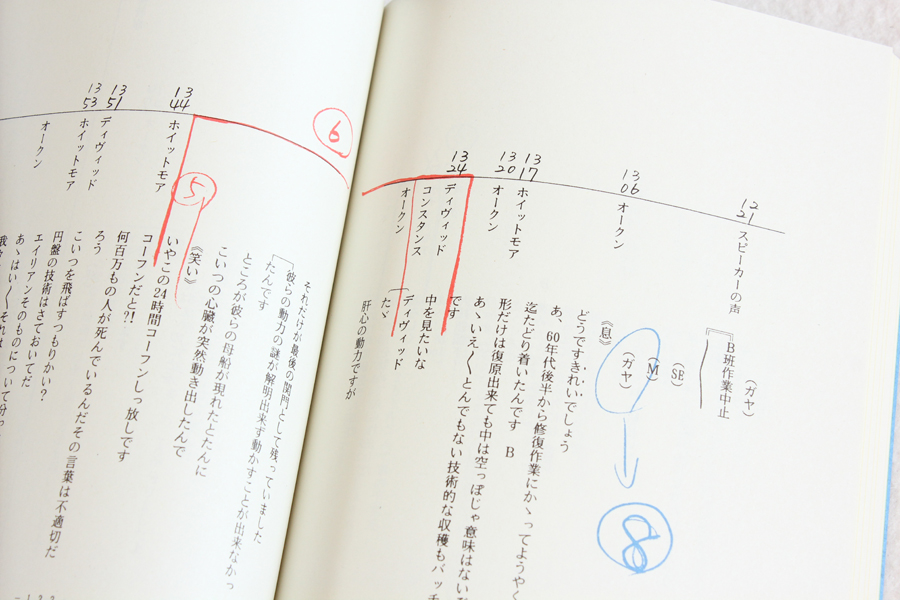 ↓日曜洋画劇場の吹替台本では、なんと色鉛筆などの書き込みもカラー印刷で再現。