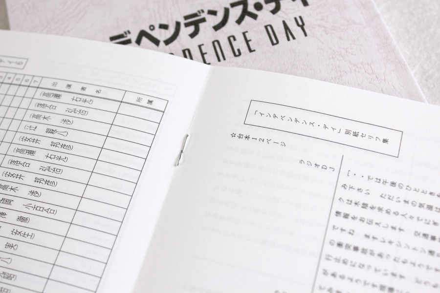 ↓ソフト版の吹替台本には、香盤表と劇中のラジオDJやキャスターが読むニュース原稿などの別紙セリフ集も付属。