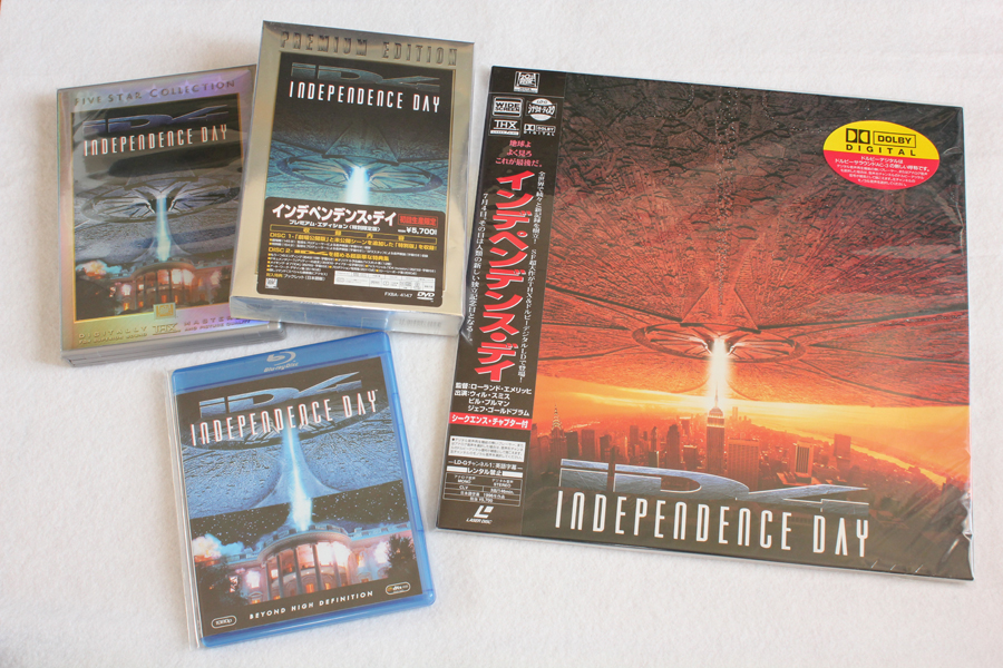 最後に、こちらは過去に購入した「ID4」。右は国内盤LD、左下は劇場公開版のみの収録だった国内盤BD、その上は154分の「特別版」も併録したDVDの北米盤(左)と、そのローカライズの国内盤プレミアム・エディション(右)。