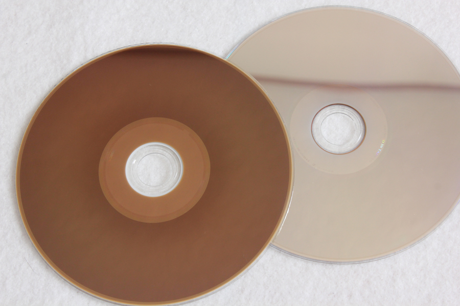 ↓BDの盤面はご覧の通りの色(左の茶色い方が今回の特典BD、下の白いのが通常のプレスBD*1層)。