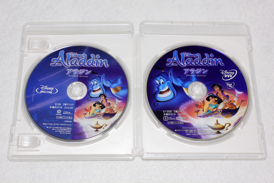 ↓「アラジン」のレーベル。左がBD、右がDVD。