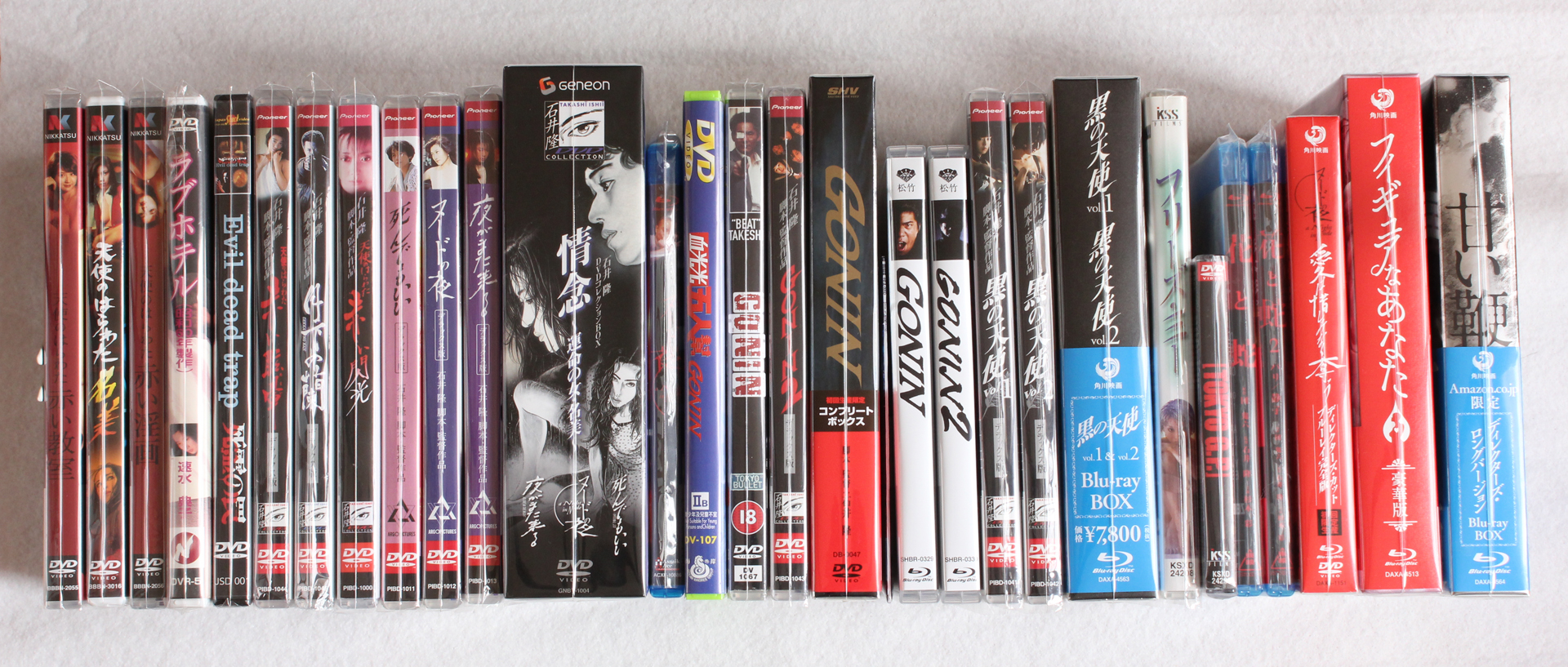 ↓石井隆関連のDVDとBDを並べてみた。結構未購入のソフトが多い。「人人」とか「沙耶のいる透視図」もいつかは買わないとと思ってるんだけど、、、。