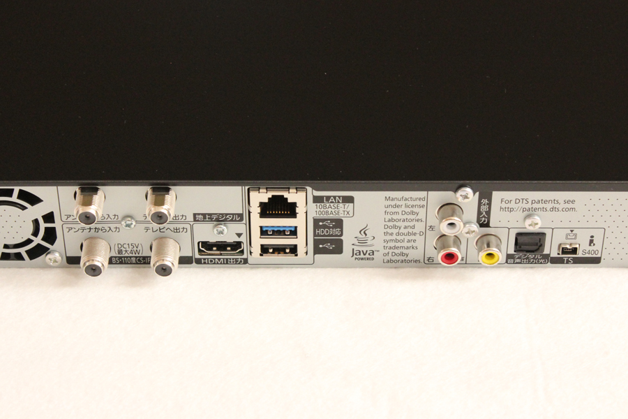↓背面コネクタ。アナログ出力は完全廃止。外部入力はコンポジット。S端子が有れば古いビデオのAVC化に使いたいんだけど、どうにか復活してくれないかなぁ、、、。その点でソニーBDレコも手放せない。