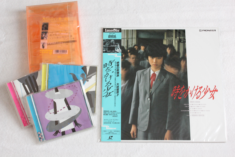 ↓左は2000年12月22発売「角川ヒロイン 第一選集」他には「セーラー服と機関銃」と「結婚案内ミステリー」を収録。ケースに入ってるタマタマは、ラベンダーの香り(なの?)の香り玉。「土曜日の実験室!」のシーンでは一緒にこの香りを嗅いでタイムリープにレッツトライ。ちなみにオレンジのビニール製ウォールケース的な収納ケースは、塩ビの外箱と密着していた部分が変質してベトベトに、、、。もう触れません。右のは1991年11月25日発売の再発盤LD。