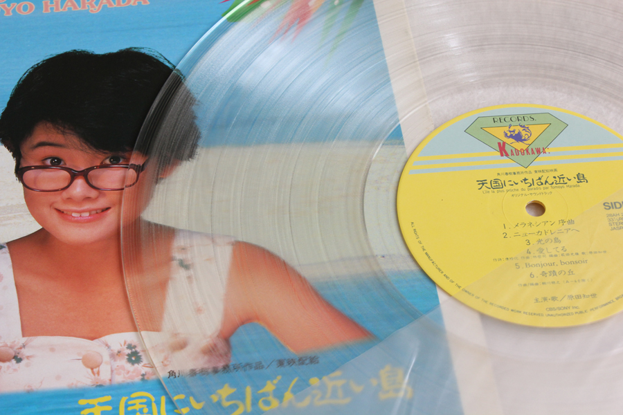 ↓「時かけ」のサントラは普通の黒だったけど、「バースデイ・アルバム」以降のレコードはこんな感じのクリアタイプ。見た目はキレイで良いんだけど、ゴミとかキズがあっても全然分からない(笑)