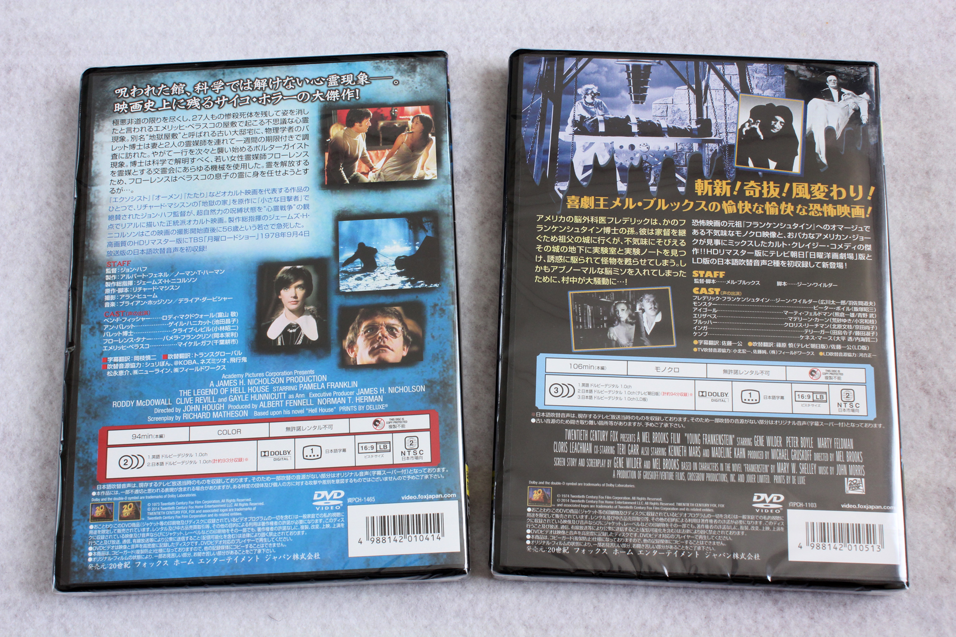 ↓ジャケウラ。左の「ヘルハウス」は1978年の「月曜ロードショー」吹替、右の「ヤング・フランケン」は「日曜洋画劇場」版とLDに収録されていた吹替を収録。
