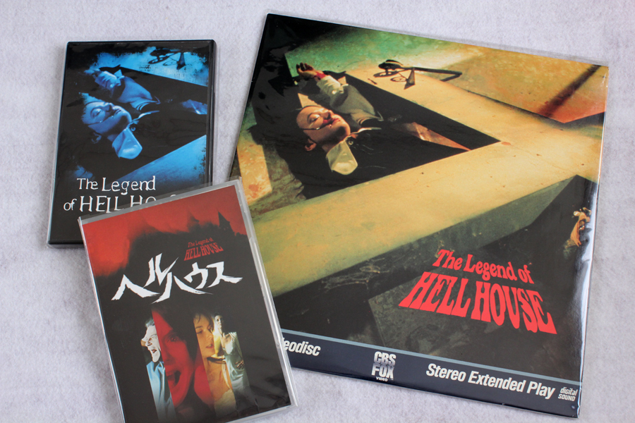 ↓こちらは倉庫部屋から引っ張り出してきた「ヘルハウス」のソフトあれこれ。左上は北米盤DVD、左下は国内盤DVD。右は北米盤LD。今回のDVDや北米DVDのジャケアートのカラー版という感じ。