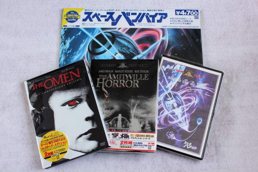 ↓その他、今回「恐怖の吹替劇場」シリーズとして発売された作品の旧盤あれこれ。「オーメン 30周年版」は2枚組みで特典山盛り吹替入りなのにこっちの方が安い!(笑)、「悪魔の棲む家 アルティメット版」も2枚組みで特典山(以下略